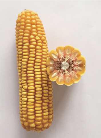 特征特性:幼苗葉鞘紫色,葉片綠色。株型半緊湊,株高232cm,穗位高79cm,全株葉片數(shù)15-17片,雄穗分枝數(shù)4-6個,花藥黃色,穎殼綠色,花絲紫色;穗錐形,穗軸紅色,穗長14.6cm,穗粗4.5cm,軸粗2.6cm,穗行數(shù)14,行粒數(shù)33粒;籽粒黃色、半馬齒型,千粒重323.6g,出籽率89.3%;成株根系發(fā)達,莖稈堅韌,抗倒伏。高抗瘤黑粉病、莖基腐病和絲黑穗病,中抗大斑病。甘肅春播生育期90-95天,屬極早熟品種。適宜在海拔1800m以下,≥10℃有效積溫達2200℃以上,雨量充沛或有灌溉條件的西北春播區(qū)種植。 產(chǎn)量表現(xiàn):2015年品比試驗在密度6000株/畝下,平均畝產(chǎn)達899kg;8000株/畝下,平均畝產(chǎn)達947kg。 |